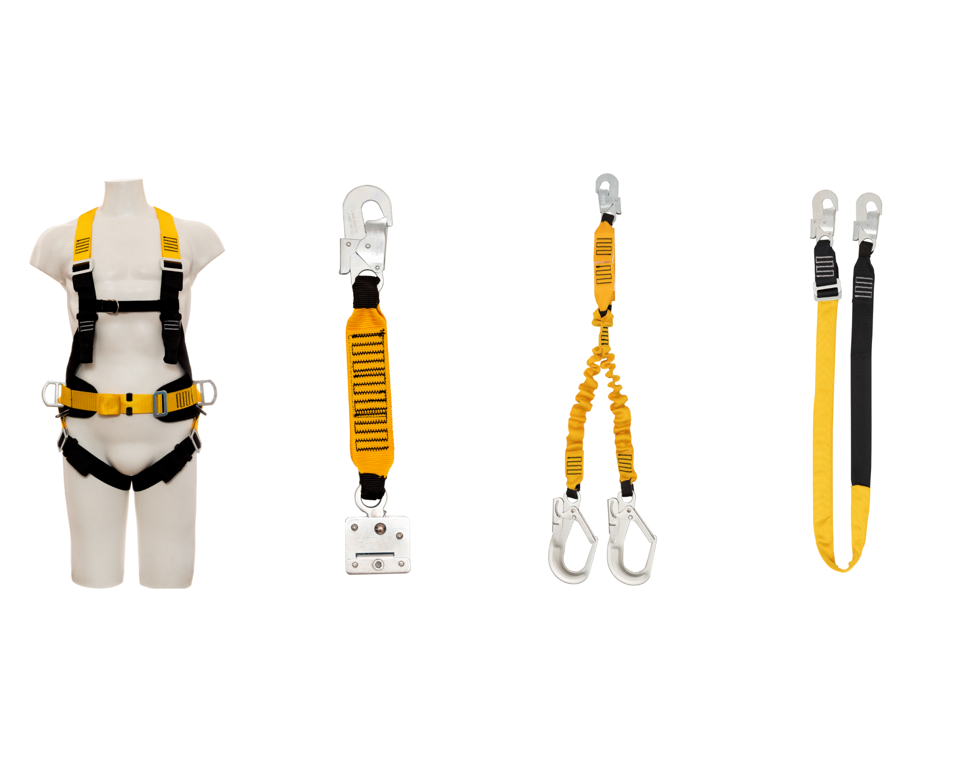 Componentes metálicos em aço carbono de alta resistência, regulador em plástico PVC e linhas 100% poliéster de alta resistência.