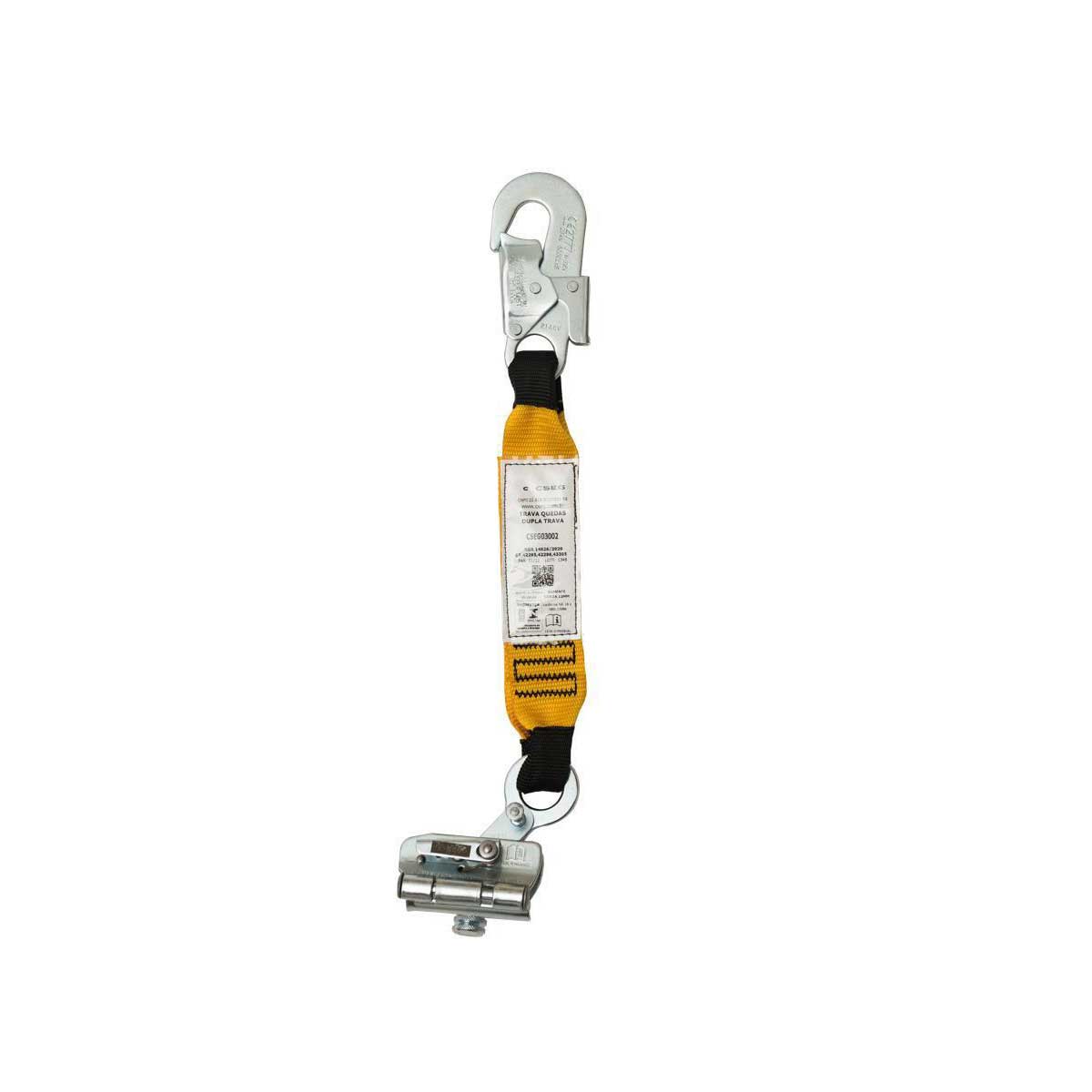 INSTRUÇÕES DE USO: Utilizado para retenção de quedas em trabalhos realizados em altura com movimentação vertical. O trava quedas deve ser conectado em corda de poliamida trançada de 12mm com carga de ruptura maior que 22KN guiado em linha flexível.
